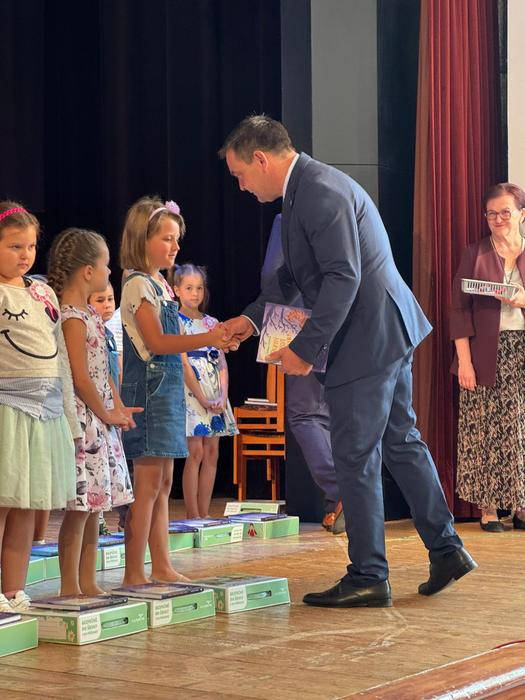 Zde je čekaly písničky a básničky, které si pro ně připravily žákyně z různých tříd pod vedením paní učitelky Dohnalové. Pozdravit všechny přítomné přijel radní Kraje Vysočina MUDr. Běhounek, který společně s panem starostou Vopravilem žáčkům předával dárky v podobě knížek a bezpečnostních kufříků. Každému z nich byl připnut krásný špendlík, výrobek paních vychovatelek ze školní družiny.