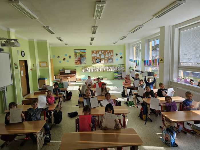 Úvod > Škola > Fotogalerie > Fotogalerie archiv > 1. ročník - První vysvědčení - velká radost v I. třídě