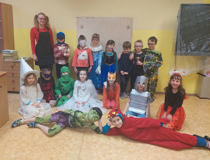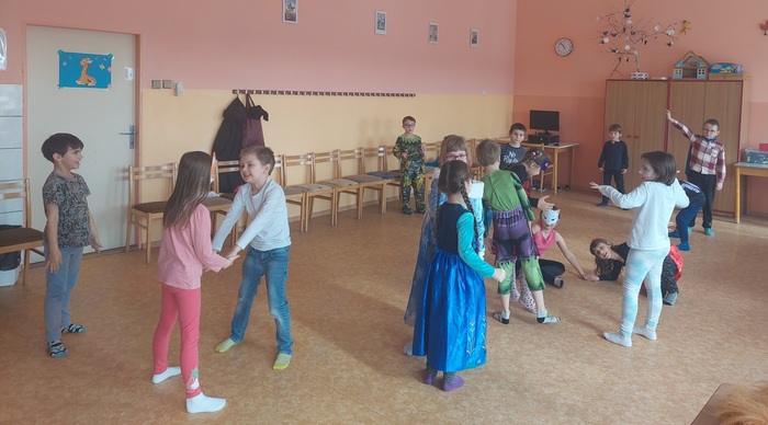 V pátek 9.února probíhal v I. třídě tematický den. Děti si užily v nejrůznějších kostýmech zábavné hry, soutěže i tancování a seznámily se s tradicí masopustu.