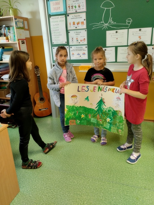 Projekt 72 hodin ve třetích třídách probíhal tentokrát převážně v lese a měl název "Les je náš poklad". Děti sbíraly žaludy pro lesní zvěř a plnily úkoly na houbové stezce. Více než obrázky hub je ale zajímaly houby skutečné, neboť ty opravdu rostly! S některými objevenými "lesními poklady" si také zahrály hru a nakonec z nich složily lesní obraz. Letos se nám i díky krásnému podzimnímu počasí tento den opravdu vydařil.