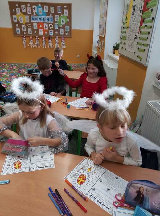 Ve čtvrtek 5. 12. proběhlo ve III. A vyučování pod názvem Andělská škola. Žáci přišli převlečení za čerty nebo anděly. Po celý den řešili úkoly z českého jazyka a matematiky spojené s mikulášskou tematikou. Vše završil příchod mikulášské družiny s krátkým programem. Žáci jí zarecitovali připravené básně, zazpívali písně a na závěr byli obdarvováni drobnou nadílkou.