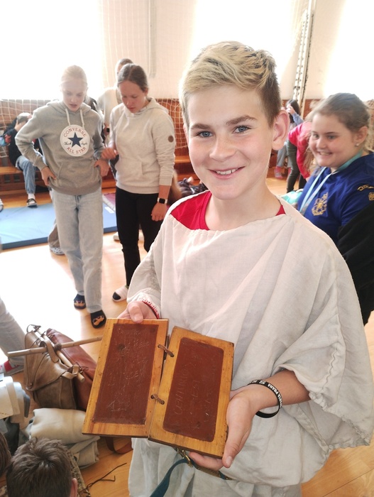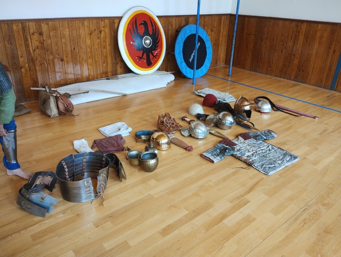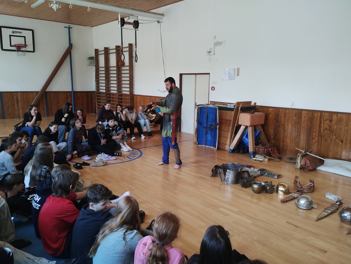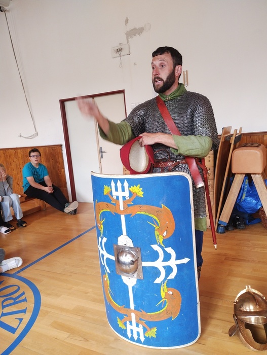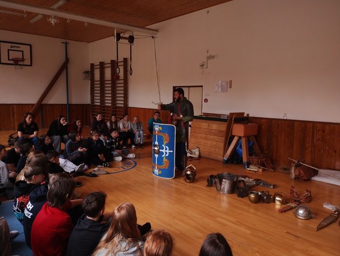 Žáci šestého a sedmého ročníku se zúčastnili přednášky o zbraních a zbroji antického Řím. Kromě zbraní a zbroje si mohli prohlédnout i předměty denní potřeby.