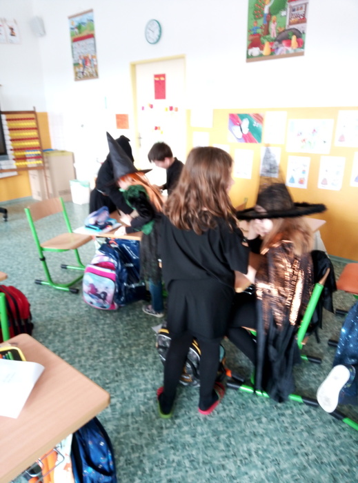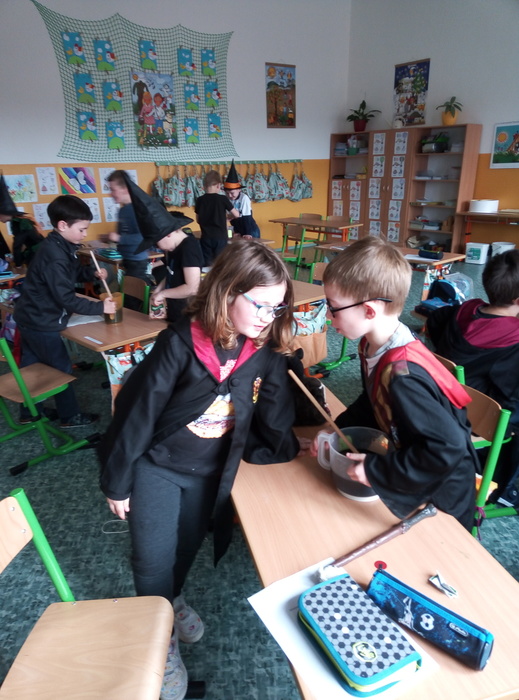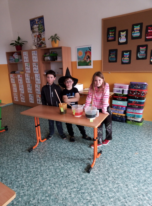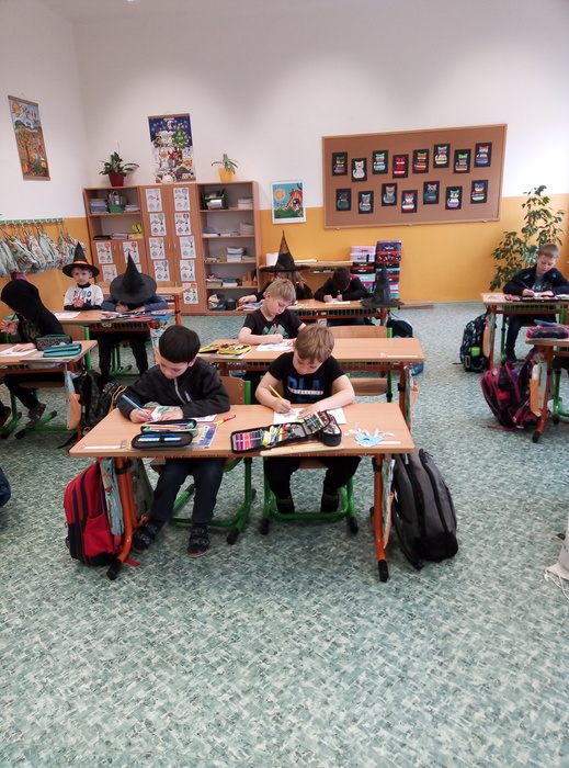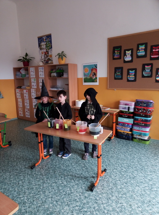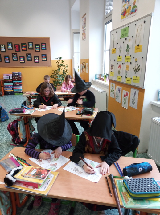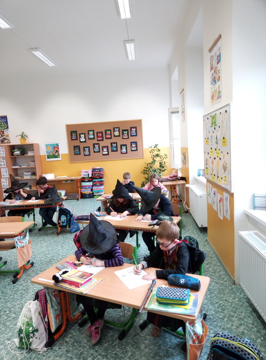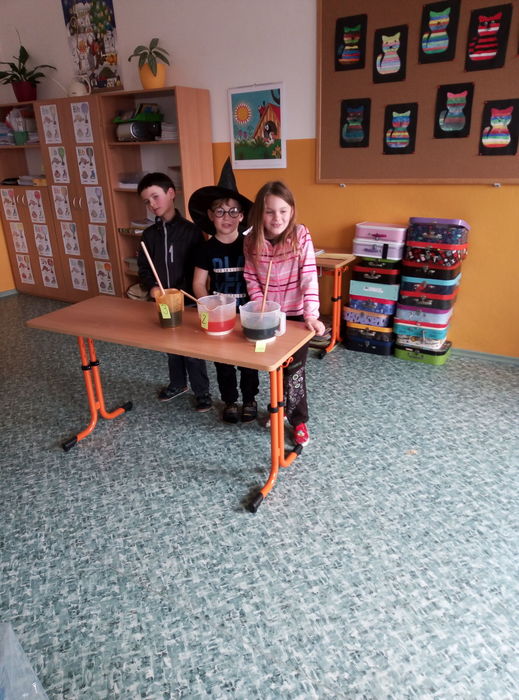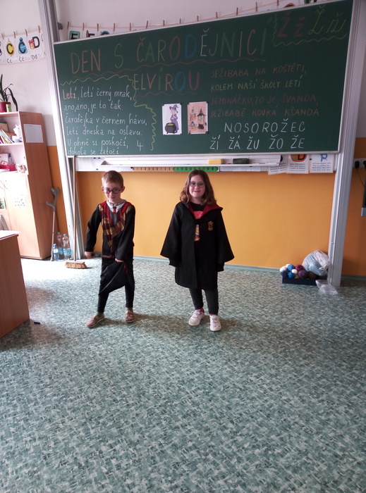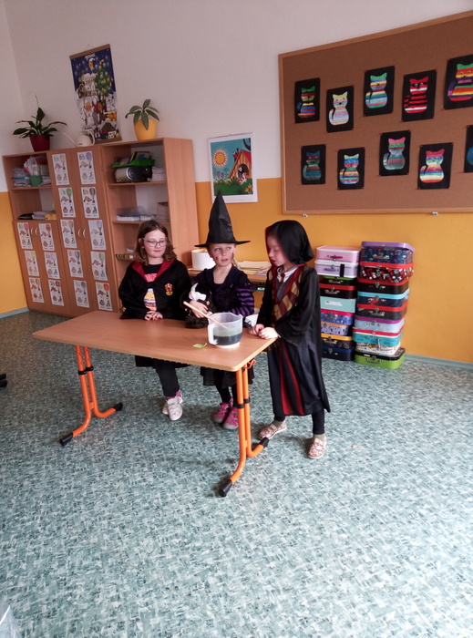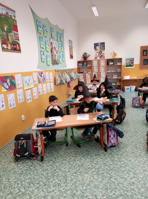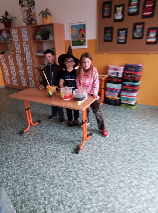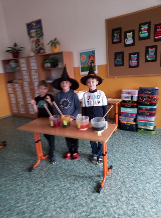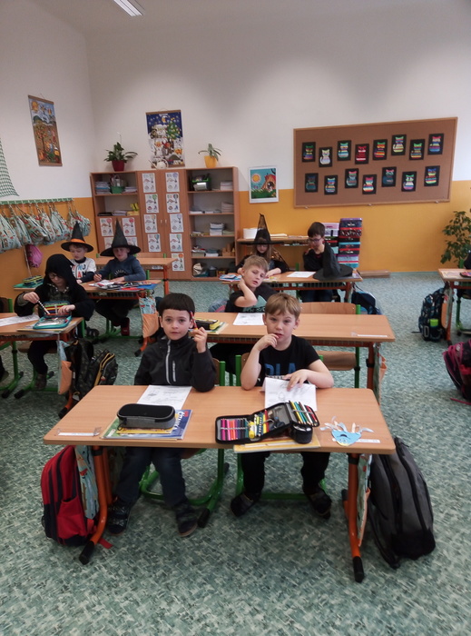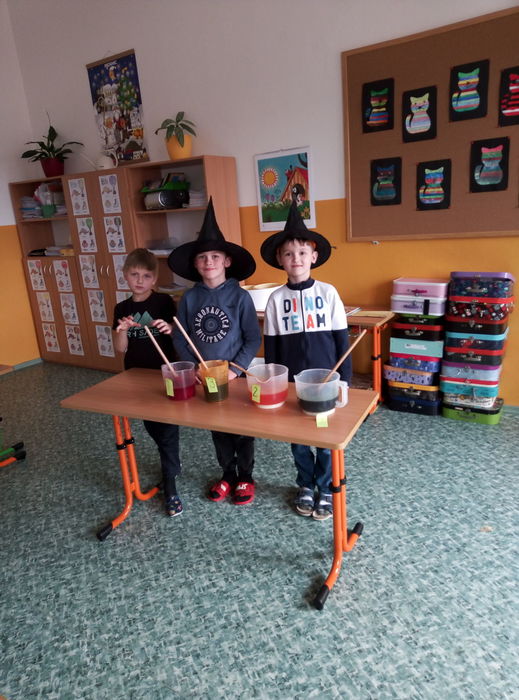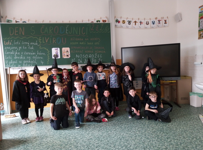 Ve čtvrtek 27. 4. 2023 proběhl v I. A čarodějnický den. Místo žáků se ve třídě ráno objevili čarodějové a čarodějky. Společně nejdříve zhlédli video Chaloupka na vršku (téma: Jak odletěly čarodějnice). Poté následovaly čarodějnické hádanky. Samozřejmě nesměla chybět nejznámější píseň Saxana, kterou si všichni zazpívali. Aby malí čarodějové a malé čarodějnice uplatnili své nadpřirozené schopnosti, museli uvařit čarodějné lektvary, které si sami pojmenovali (např. Krvavá ruka, Dračí jed …). Poslední úkol už byl snadný: nakreslit čarodějnici a vybarvit ji. Malí čarodějové a malé čarodějnice si tento den užili a vrátili se domů zase jako žáci I. A.
