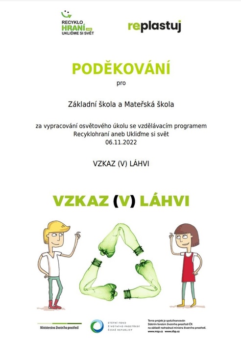 Úvod > Škola > Fotogalerie > Fotogalerie archiv > II. třída - Recyklohraní - certifikát