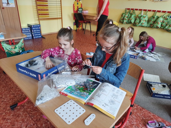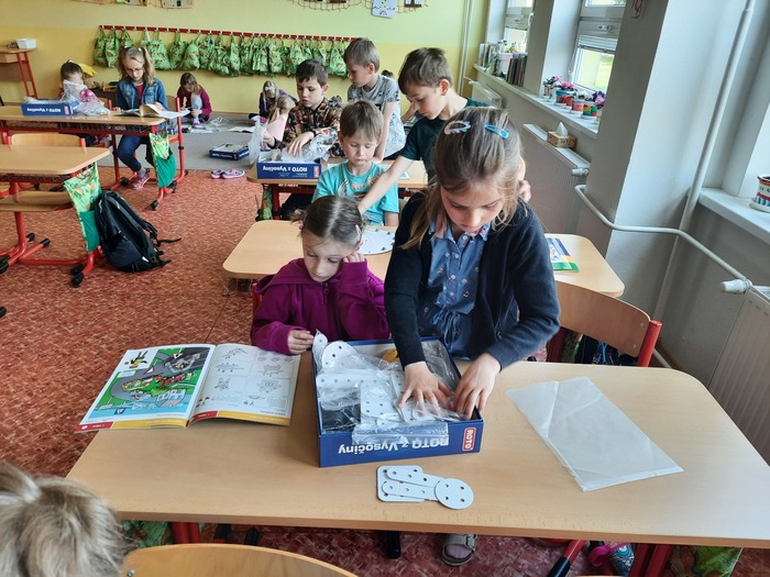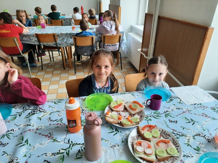 Ve středu 24. 5. 2023 pozvali druháci do školy předškoláky z MŠ. Ukázali jim školní kuchyňku, kde si společně vyrobili svačinu. Na svačině si všichni pochutnali ve školní jídelně. Pak následovalo stavění se stavebnicí ROTO.
