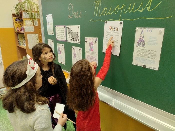 V pátek před jarními prázdninami slavili žáci druhých tříd Masopust. Všechny děti přišly do školy v maskách. Jednotlivé masky se ostatním představily a pak následovala masopustní stezka s tajenkou, při které si žáci připomněli lidové zvyky našich předků. Nejvíce se děti bavily při různých tanečních hrátkách a soutěžích, např. při koštětovém tanci, tanci s míčkem nebo tradiční židličkové. Masopust jsme si všichni užili a již se těšíme na další podobnou akci!