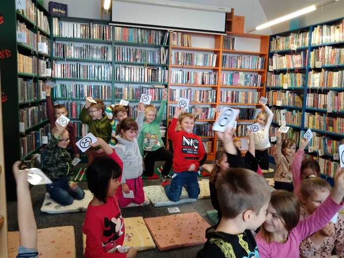 Úvod > Škola > Fotogalerie > Fotogalerie archiv > První třída v knihovně - povídání o pohádkách a pohádkových bytostech.