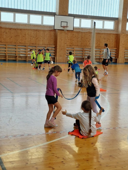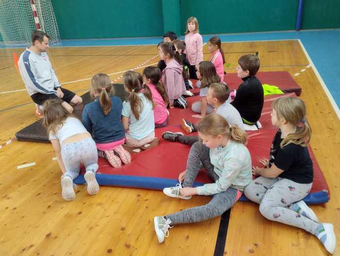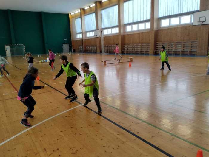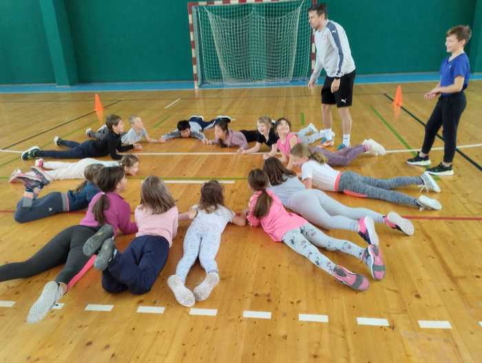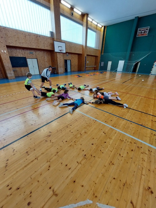 Akce Škola v pohybu se nám všem moc líbila. Hodina byla složená ze samých zajímavých a neobvyklých pohybových her a děti je hrály s nadšením a velkým zaujetím. Žíněnky měly najednou čtyři kola a stala se z nich závodní vozidla, děti utvořily na zemi kruh a rázem z nich byl záhon mrkví, které se zahradníci snažili vytáhnout ze země, konaly se závody koníků tahajících za sebou vozku v sedle atd. Hry byly zaměřeny na rychlost, obratnost, sílu, ale i spolupráci a souhru družstev. Jedna hra následovala za druhou a než jsme se nadáli, hodina této nezvyklé tělesné výchovy končila. Děkujeme panu Moravci a už se těšíme na příště!