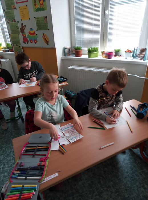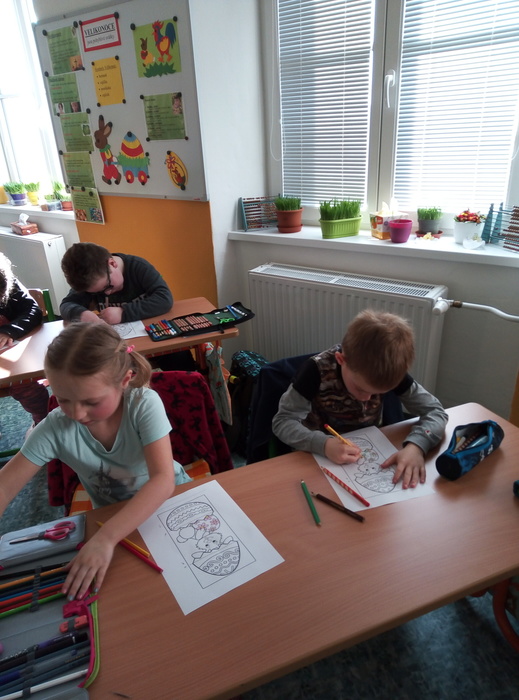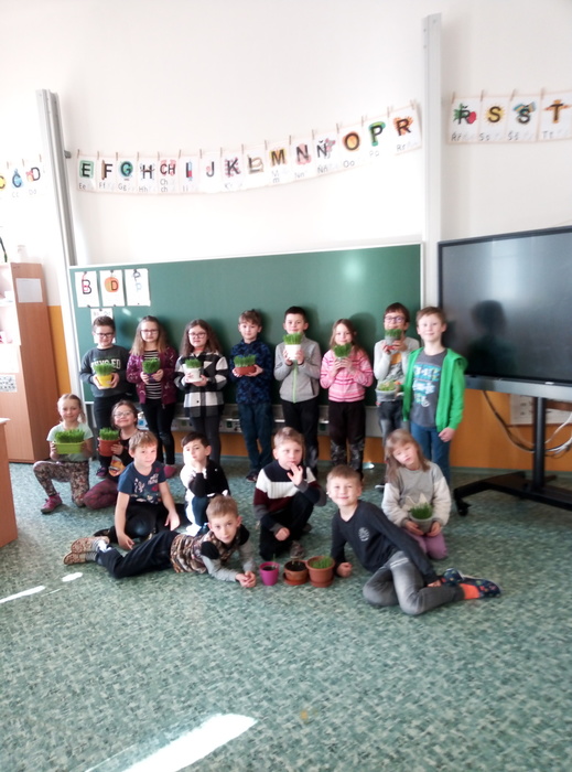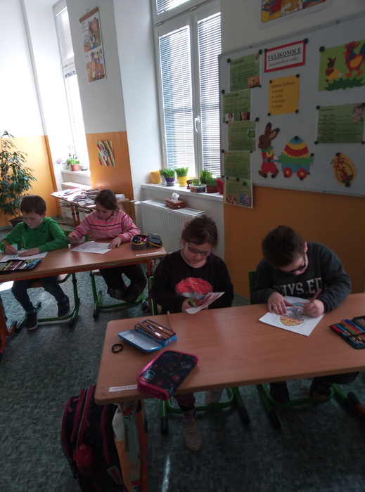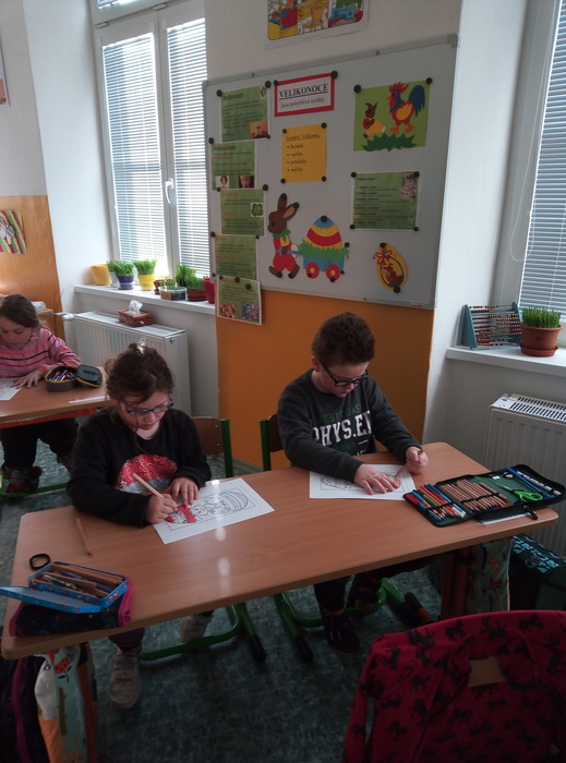 V pondělí 3. 4. 2023 si žáci I. A připomněli velikonoční zvyky a tradice.K nim patří i setí velikonočního osení, které si pak žáci odnesli domů. K navození správné atmosféry přispěla i ukázka z videa s názvem Chaloupka na vršku (Jak se pomlázky ztratily). Všichni se společně naučili pohybovou koledu Hody, hody, doprovody. Ve vyučování nesměla chybět velikonoční matematika, tj. velikonoční vajíčka se skořápkami (příklady na sčítání a odčítání do 10) a velikonoční řetězec příkladů. Své výtvarné schopnosti žáci uplatnili při výrobě velikonočního přání pro rodiče. Celý tento den vyvrcholil velikonoční hrou „Šibenička“, která měla u žáků velký úspěch.